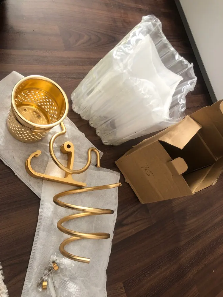 Gold Hair Dryer Holder Space Aluminum Bathroom Wall Shelf Hair Dryer Rack with Basket Bathroom